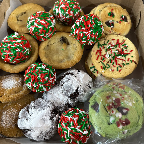 Welcome to the big Christmas sampler! We’ve got 4 Oreo stuffed, 3 ginger molasses, 3 mint, 3 choc crinkle, 3 choc chip sprinkle, 3 all sprinkle and 6 sprinkle better batter bites. All of this $50! Plant based as always. Avail until January!