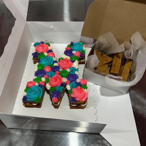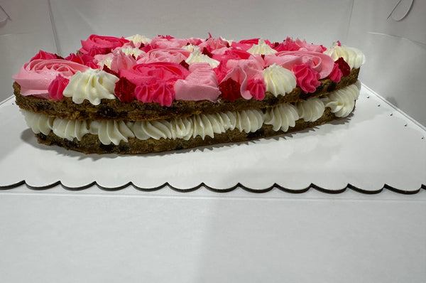 Two layers of cookie cake with buttercream, iced to your preferred colours! The cake and the cut offs w extra buttercream are included. 48 hours required for order completion. Plant based as always